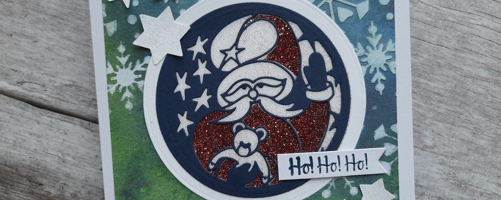 So I started by die cutting the Christmas Santa aperture die in navy card using a nested circle die to fully cut it out.