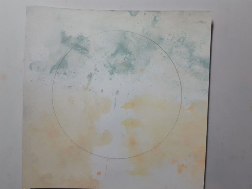 I then sat quietly for about half an hour as I fussy cut 12 of the leaves for my wreath – I must admit it was quite therapeutic! I found a suitable inky background in my stash and trimmed it down to fit a 6×6 card blank. So I could get my wreath balanced I used a circle die to draw a pencil outline on the background.