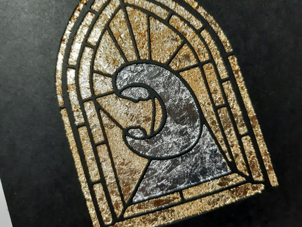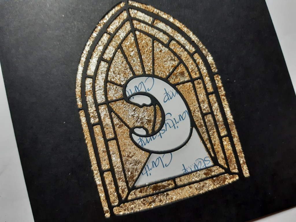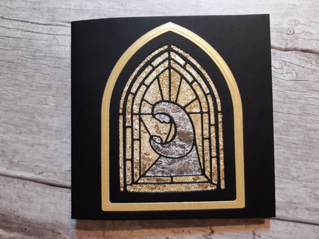 I started by cutting the madonna die into the front of a black 6×6 card blank.