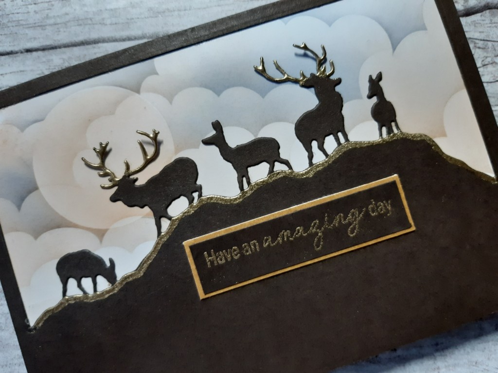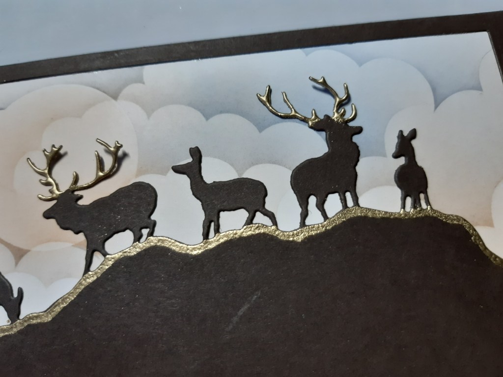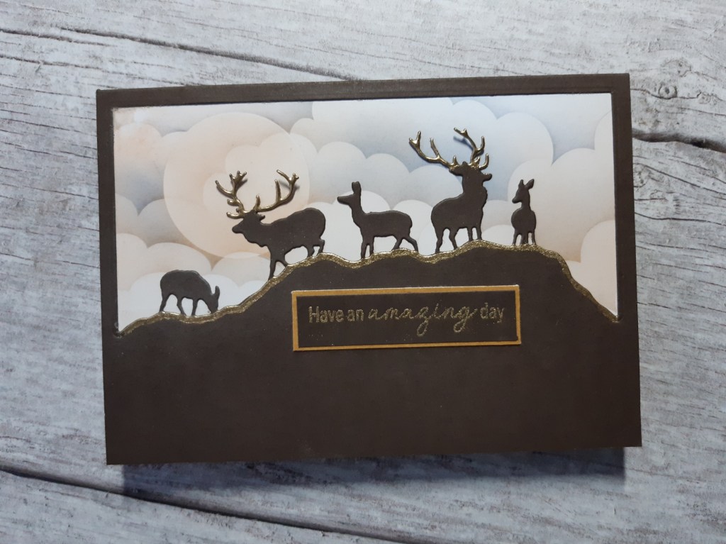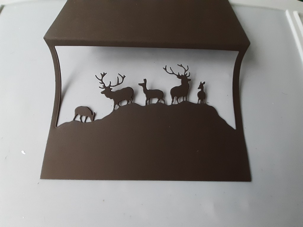 I made an A6 card blank from dark brown card and die cut the deerscape into the front.