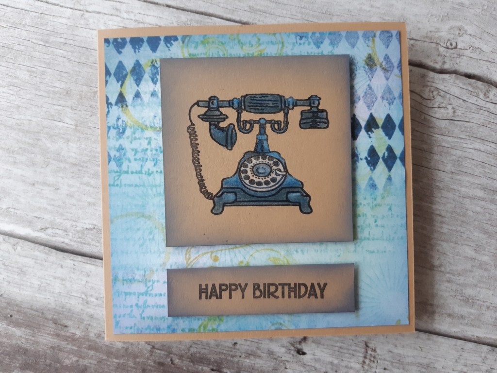 Hello crafty friends. Well it’s Sunday again so I’m dipping back into Claritystamp’s new design stamp club – today it’s for the ‘vintage phone’ from January 2018. I really wasn’t sure how best to use this stamp (it’s not my usual style), so adapted one of Dee Paramour’s designs from the project sheet that comes with the club stamps.