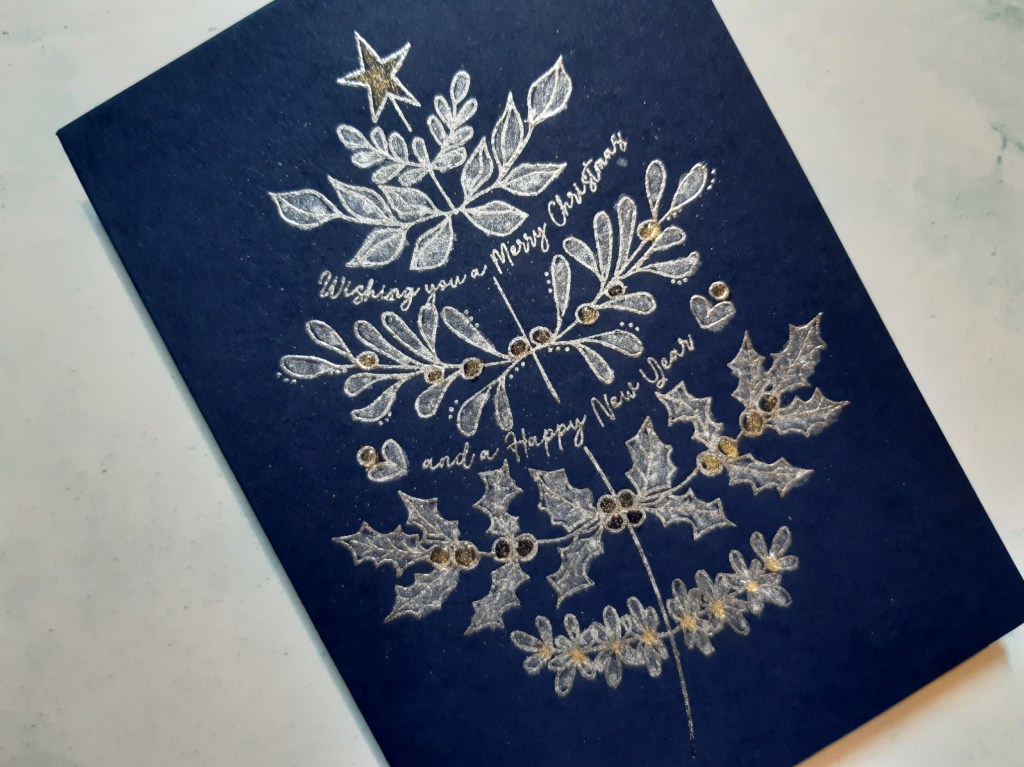 I then just used Pearlywinks spray and a paintbrush to colour the image – ‘pure pearl’ for the leaves and ‘golden shimmer’ for the star and berries.