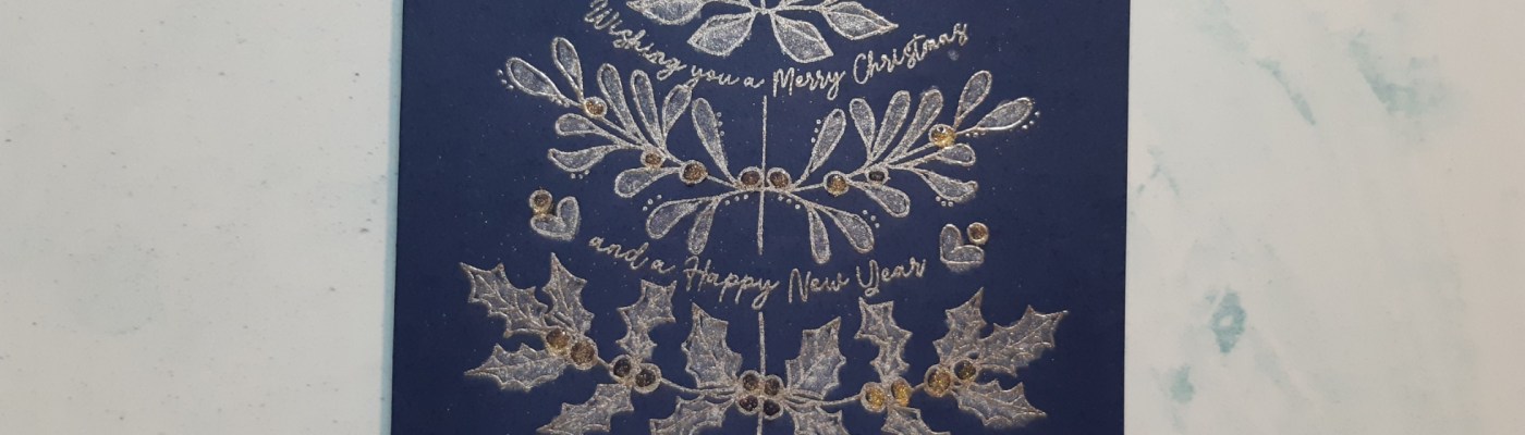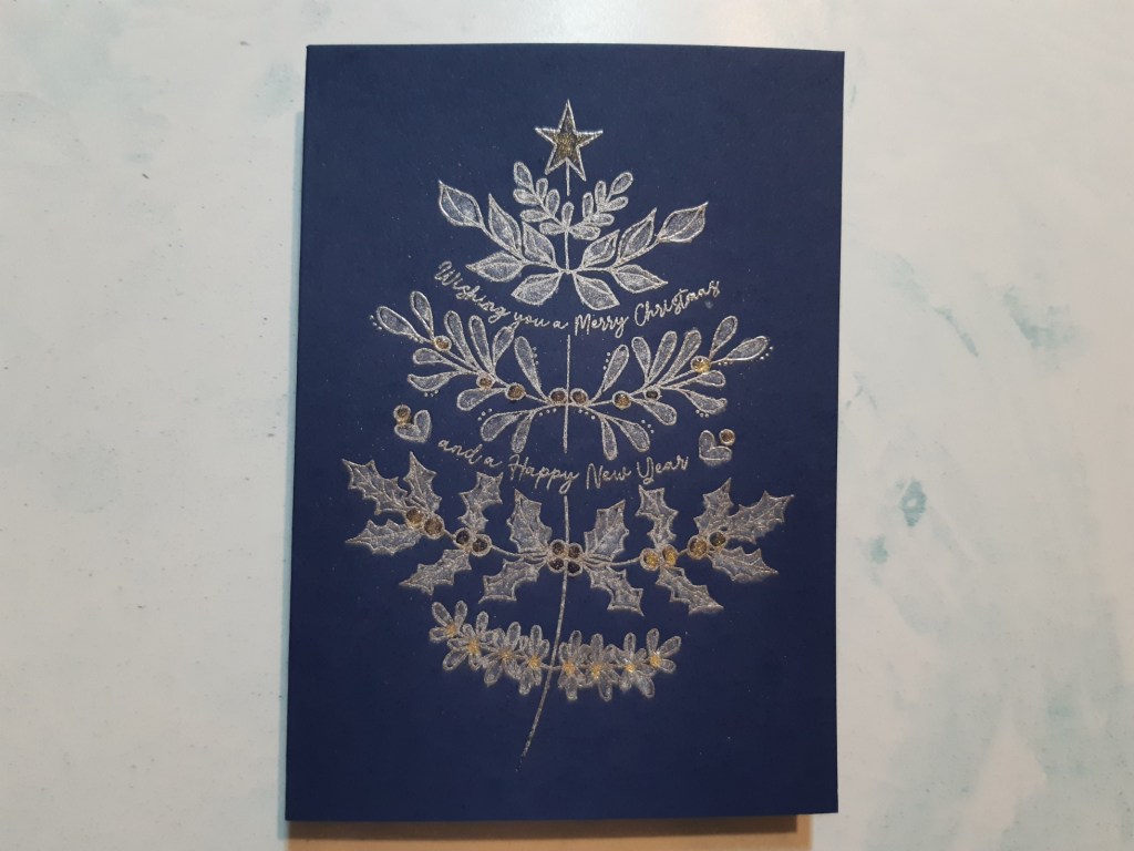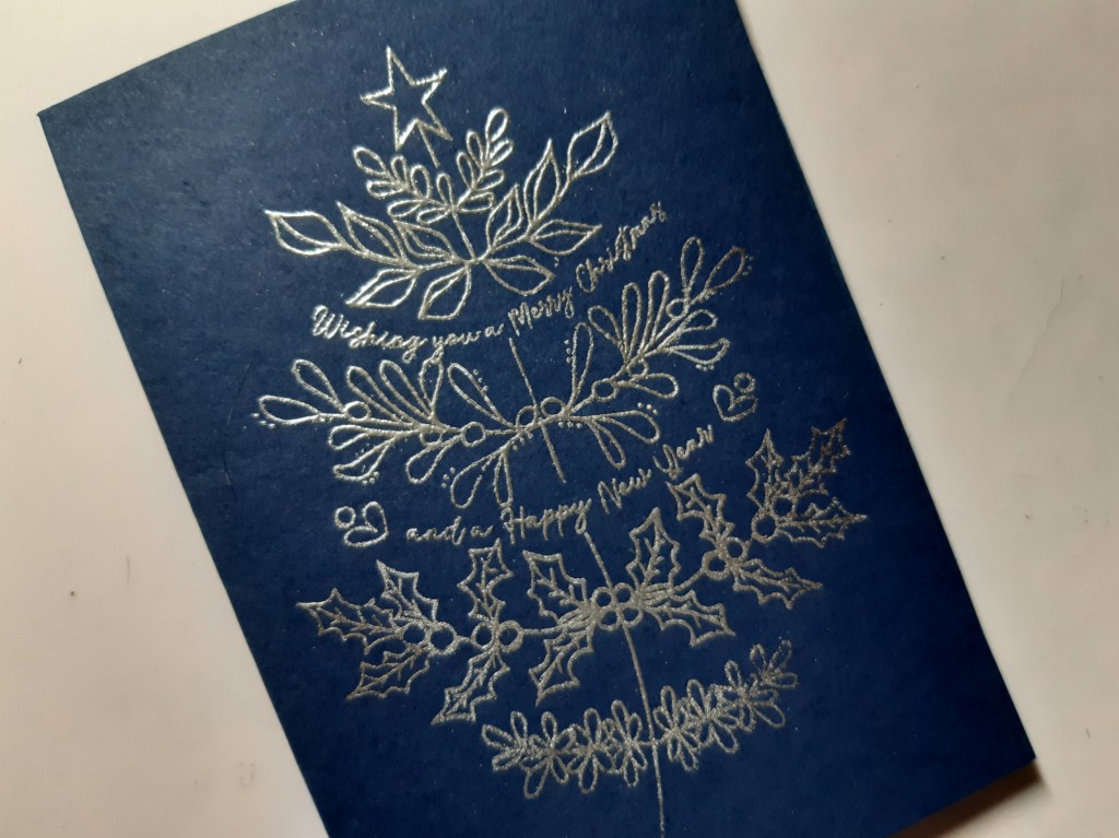 So… what else to do with my day but craft?! I decided to make a simple card using Julie Hickey’s ‘Oh Christmas tree’ stamp. It’s such a lovely image, it doesn’t really need much embellishment. I made an A6 card blank from navy cardstock and heat embossed the image using WOW’ superfine metallic silver powder.