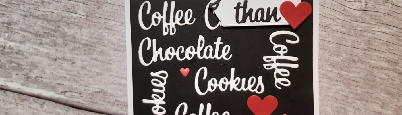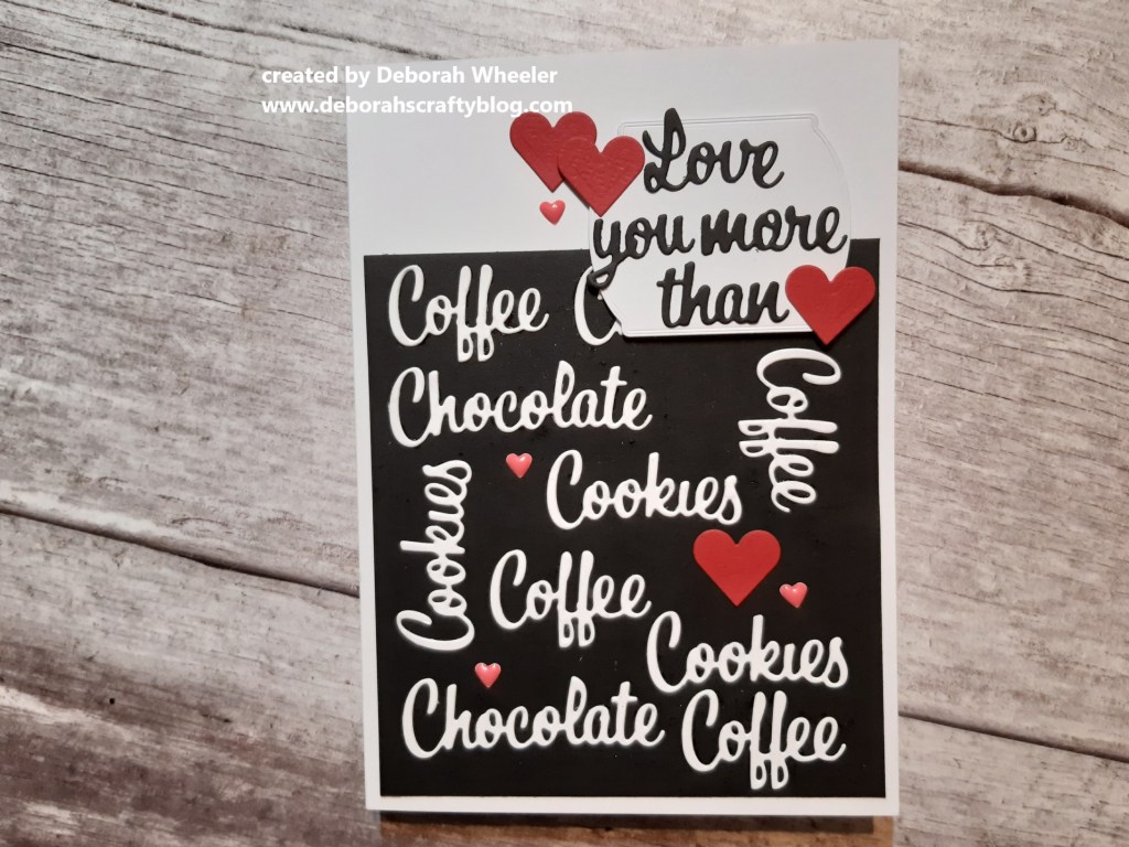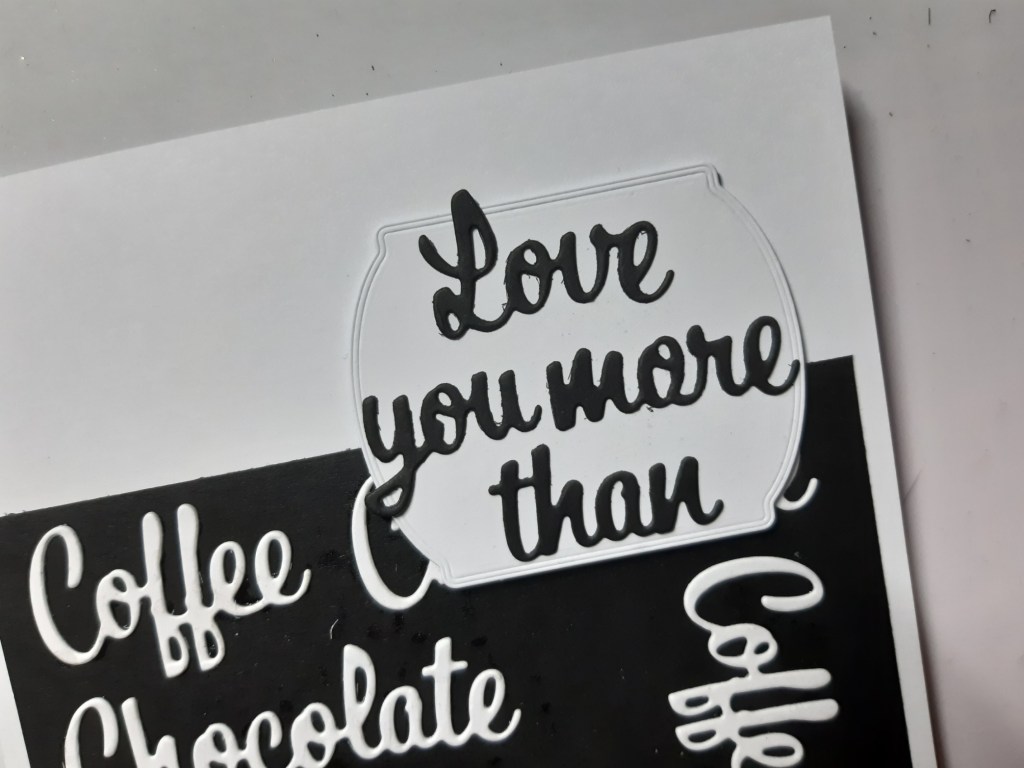 I started by cutting the words from Stampin’ Up!’s ‘love you more than’ die set in white card and glued them onto a piece of black card, which I then attached to a 5×7 card blank.