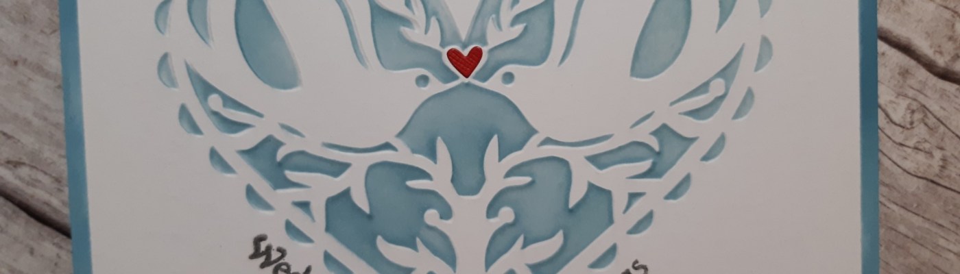 Hello crafty friends. Bit of a change today – I need to make some more wedding cards, so thought it best to make a start. I’ve used this ‘dove heart’ stencil from Claritystamp quite a few times – it’s a perfect image for wedding, anniversary or engagement cards. I’ve taken the colours from the photo over at Just Us Girls – I don’t have any snowmen, but love the colour scheme and picked up the heart motif as well.