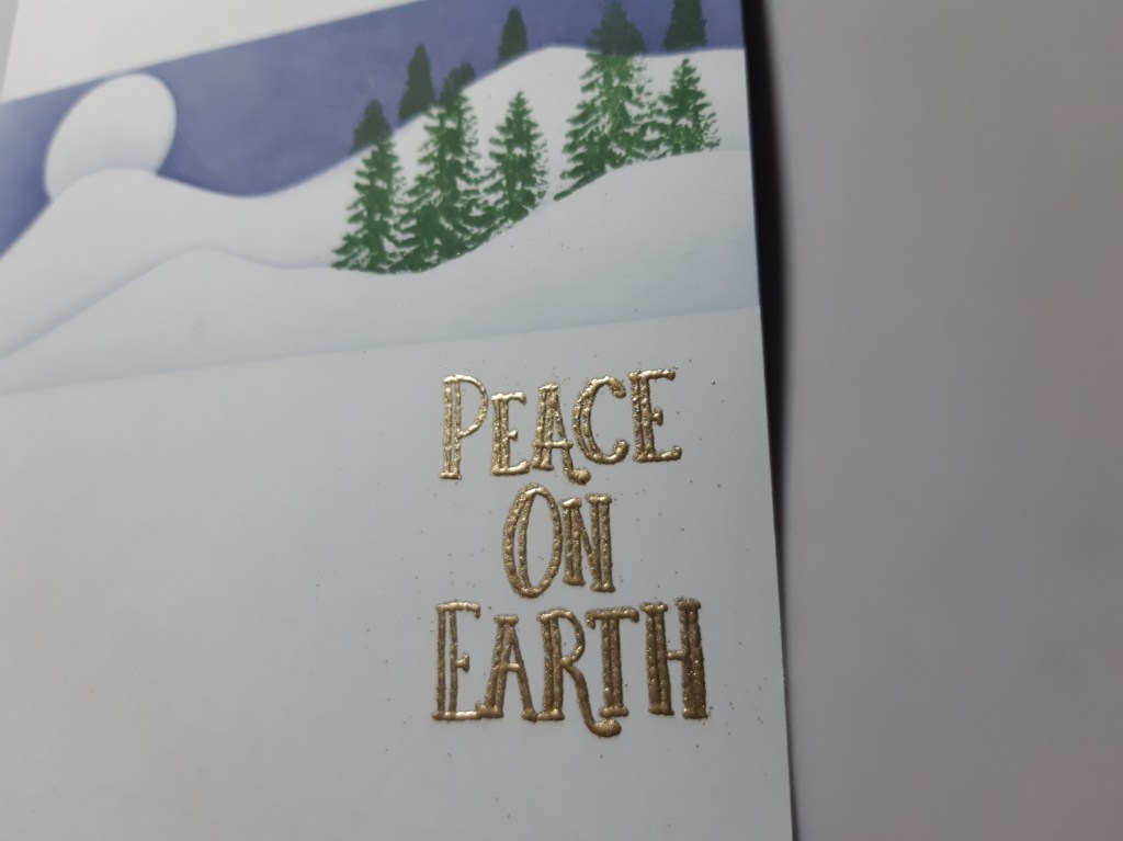 I added the sentiment from the ‘Christmas rounds – doves’ stamp set and heat embossed it in gold.