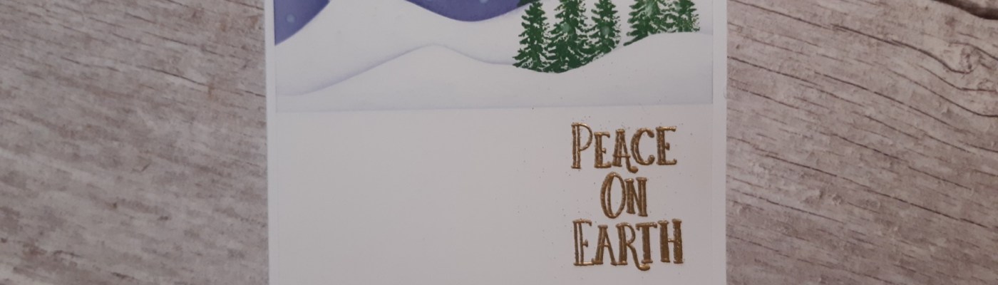 The whole piece them went onto the A6 card blank. I finished by adding snow in the sky with a Posca paint pen – on reflection I now wish I’d scattered Wow’s ultra high white powder instead as the snowflakes would have looked less regular, but never mind.