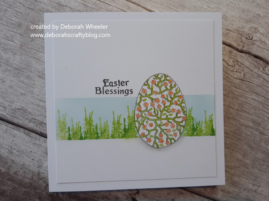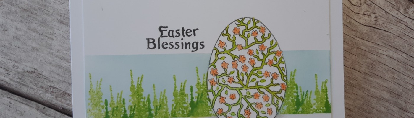 Welcome to my crafty blog, and an Easter egg with a bit of a difference. I’ve had Claritystamp’s ‘chicks and eggs’ set for a little while and felt it really ought to come out of it’s packet! It’s ideal for this week’s challenge theme of ‘egg’ over at Just Us Girls – I also picked up the colours, egg and ‘Easter blessings’ sentiment in the inspiration photo at The Card Concept