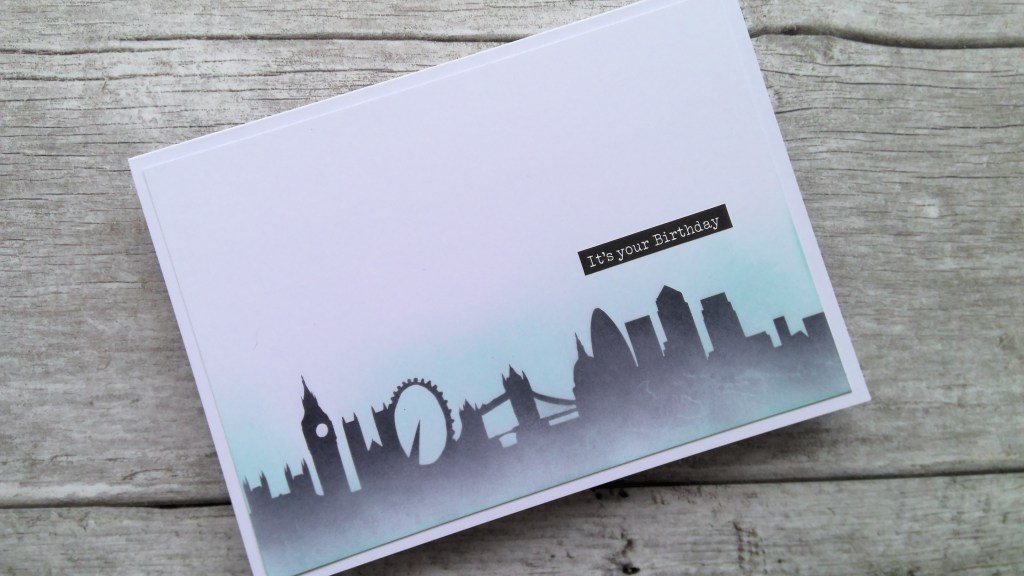 Welcome to my crafty blog, and a very CAS birthday card using one of Claritystamp’s ‘city skylines’ masks – can you guess which one?! I took the inspiration for this from AAA Cards‘ current theme of ‘along the edge + your country’. The London skyline is a pretty iconic image for the UK.