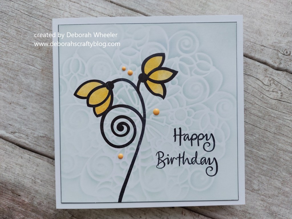 Welcome to my crafty blog and some more flowers from Claritystamp. This ‘snowflake doodle round’ set hasn’t surfaced for a while so I thought it deserved an outing, inspired by the challenges at Global Design Project and TGIF