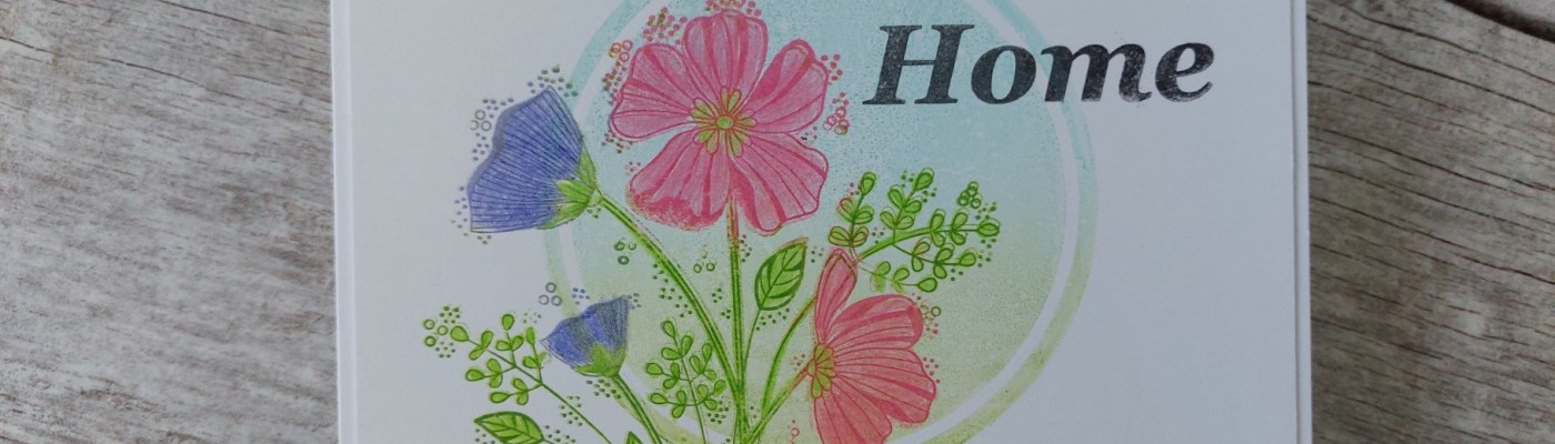 I just stamped the sentiment in ‘watering can’ Archival to finish (this is a really old one that I’ve had for ages – ‘new home’ stamps seem to be difficult to come by!), and then attached it to a 6×6 card blank