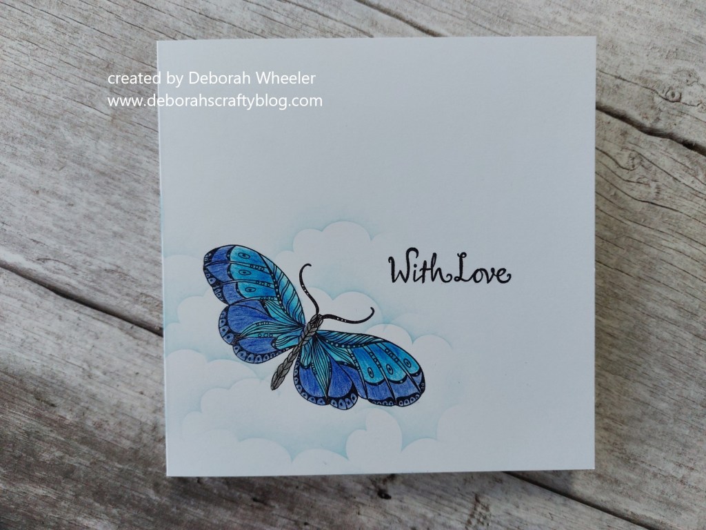 Thanks so much for joining us at ‘Less Is More’ Deborah. Love your CAS card with its vibrant blue butterfly/moth amongst those clouds …… Sid xx