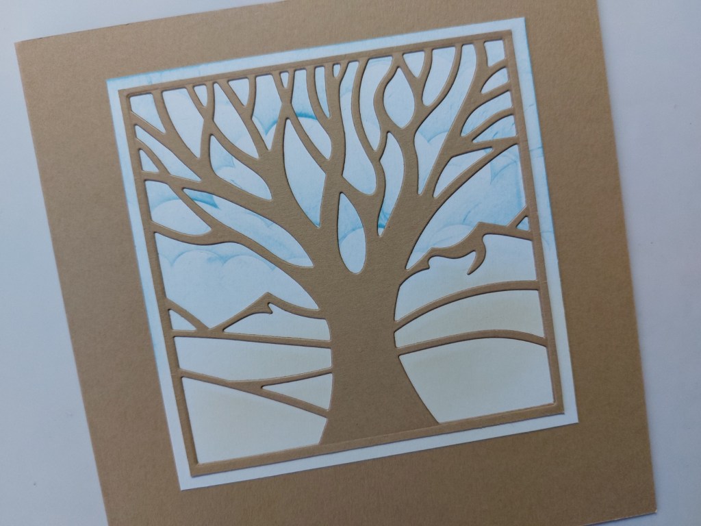 Hello there. It’s a little while since I used one of the aperture dies from Claritystamp, and I thought that one of the panoramic scenes (this is the ‘one tree’) was ideal for the current theme of ‘bark’ over at Inkspirational. I’ve had a second go with the colour palette from Color Hues as well.