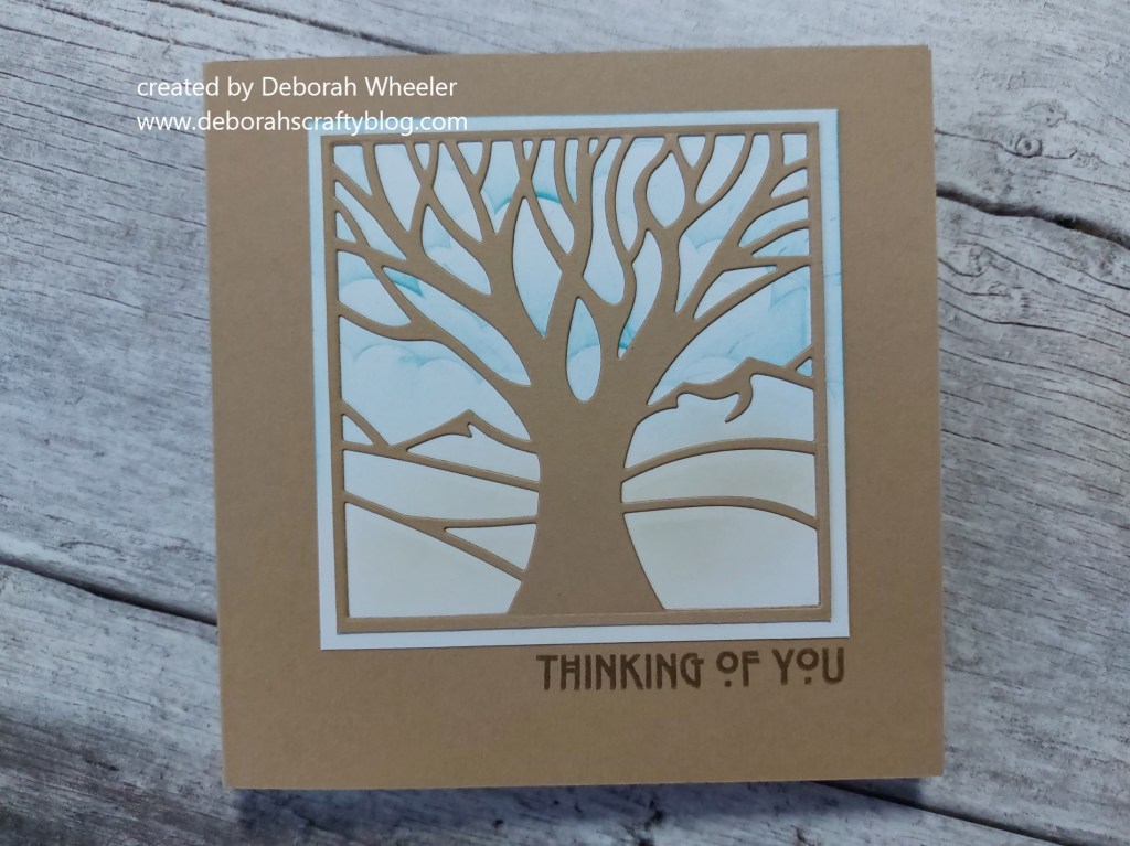 I trimmed a piece of kraft card, added ‘Stick it’ adhesive sheet on the back and then cut the die into it. I could then attach it to the background and stick the whole topper onto a 6×6 kraft card blank.