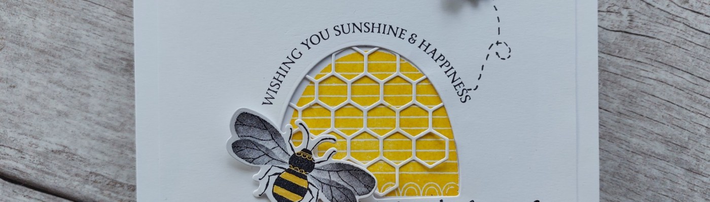 Welcome to my crafty blog and the next letter in the Alphabet Challenge series. Today we’re on to D and my teammate Lynda has challenged us to used diecuts on our cards. I’ve gone for one of my favourite sets – ‘honey bee’ from Stampin’Up! (which is now retired) – my card features four die cuts! I combined a few other challenges into this card as well: Festive Friday are celebrating World Bee Day; Global Design Project have chosen ‘beautiful bugs’ as their theme, and the new challenge from Just Add Ink asks us to CASE (copy and selectively edit) one of our own cards.