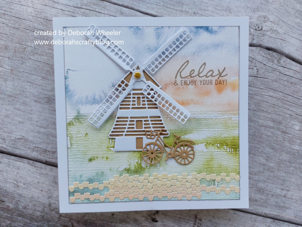 I was going to congratulate you on your wonderful watercolor background, Deborah. lol That paper did work perfectly for your wonderful windmill scene. The tiny tulips are darling and you even managed to get the bike in too. It has been a pleasure having your as out guest this month. All of your creations were fantastic.