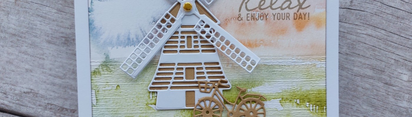Welcome to my crafty blog, and the last of my design team cards for Just Us Girls. It’s been fabulous working with the design team, who’ve been so welcoming, but I get to go back to playing along from next week! This week we’ve got a photo for inspiration, which immediately made me think of the Stampin’ Up! ‘windmill fields’ dies. I’ve also incorporated the recipe challenge from As You See It (my ‘B’ is a bicycle!)