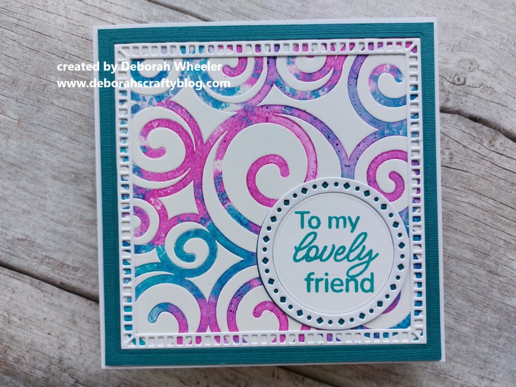 Hello crafty friends. I’ve been playing with my gel plate and alcohol inks today, using the latest stencil from Claritystamp’s Craft Club thanks to the inspiration from Barbara Gray on the project sheet. I’ve incoproporated three challenges into this card: Festive Friday are celebrating National Best Friends Day (it’s on June 8th, if you didn’t already know) and I’ve taken pink, friendship statement & swirls from their inspo list. TGIF want us to add frames to our creations, and I thought this would also make a good second offering to Seize the Birthday‘s stencil challenge