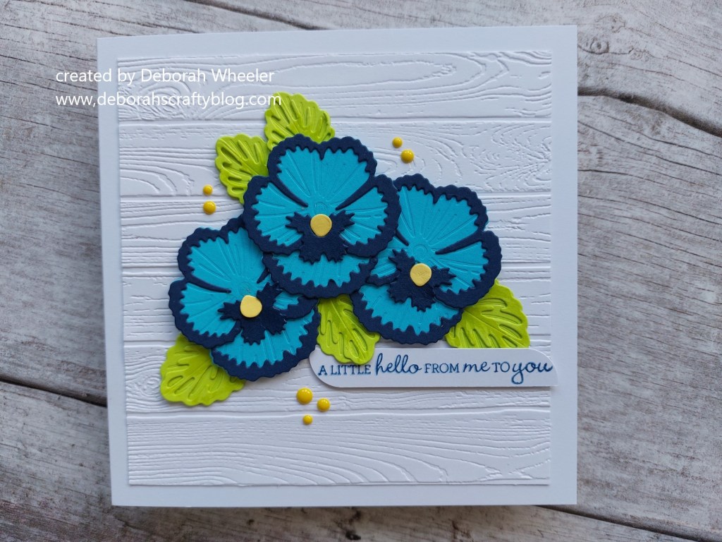 your pansies are so pretty, Deborah – and the wood embossed background sets them off perfectly – thanks for playing with us at the TicTacToe Challenge this week!