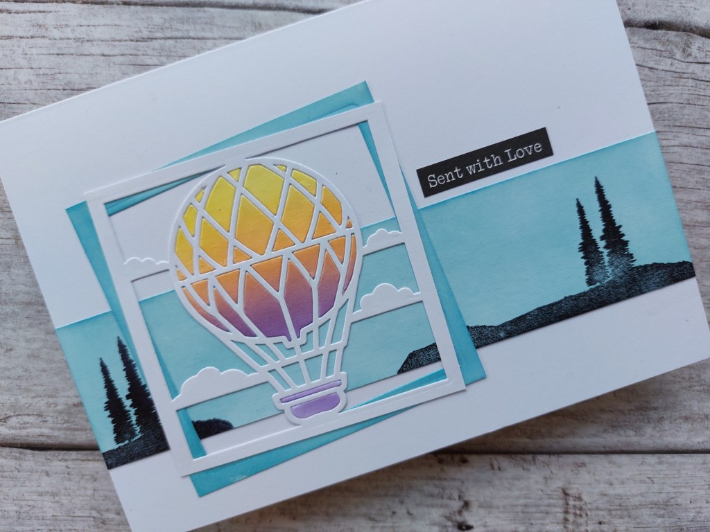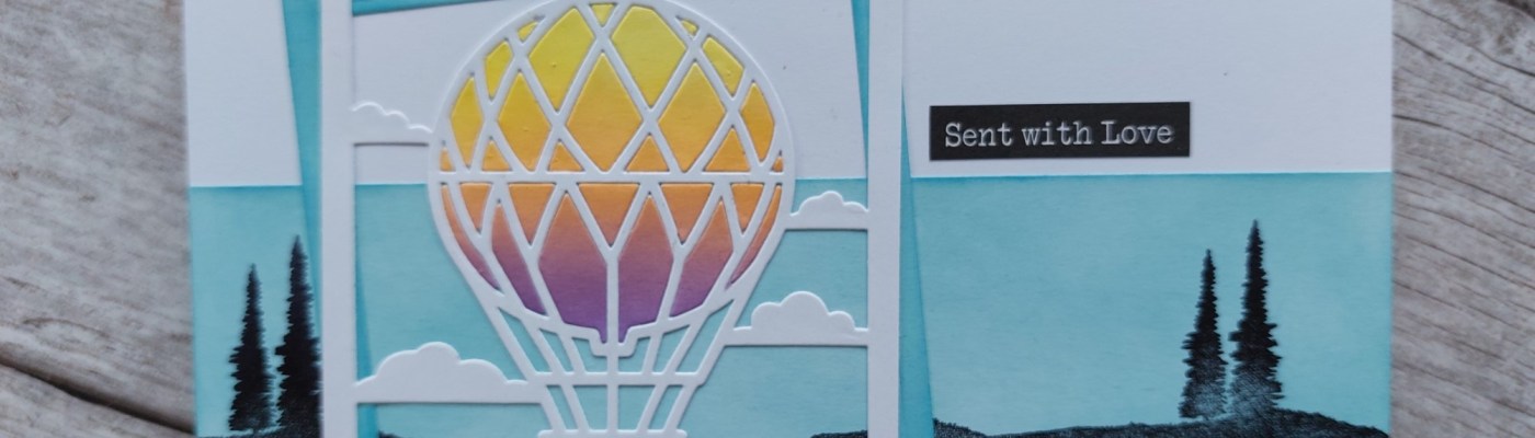 I decided to use it in the background with the latest Craft Club die, the hot air balloon. I’ve used the layout from Freshly Made Sketches and the palette from Color Throwdown this time. I also thought it would work with the ‘windy’ theme from CASology, although the balloon does look like it’s just floating through the sky on a very gentle breeze!