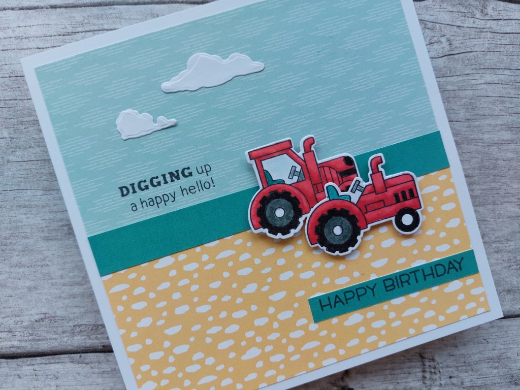 Hello crafty friends. I decieded to have another play with the fab ‘farming fun’ set from Newton’s Nook, thanks to the challenge theme of ‘kards for kids’ over at The Paper Players (Congrats on the 600th edition to the team!). These tractor & digger images are just fab! I’ve also used the layout from Atlantic Hearts and the colour palette from Inspire.Create this time.