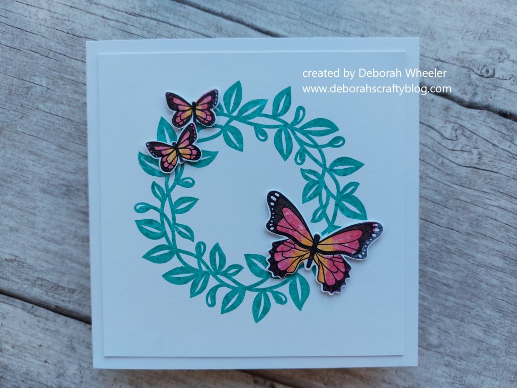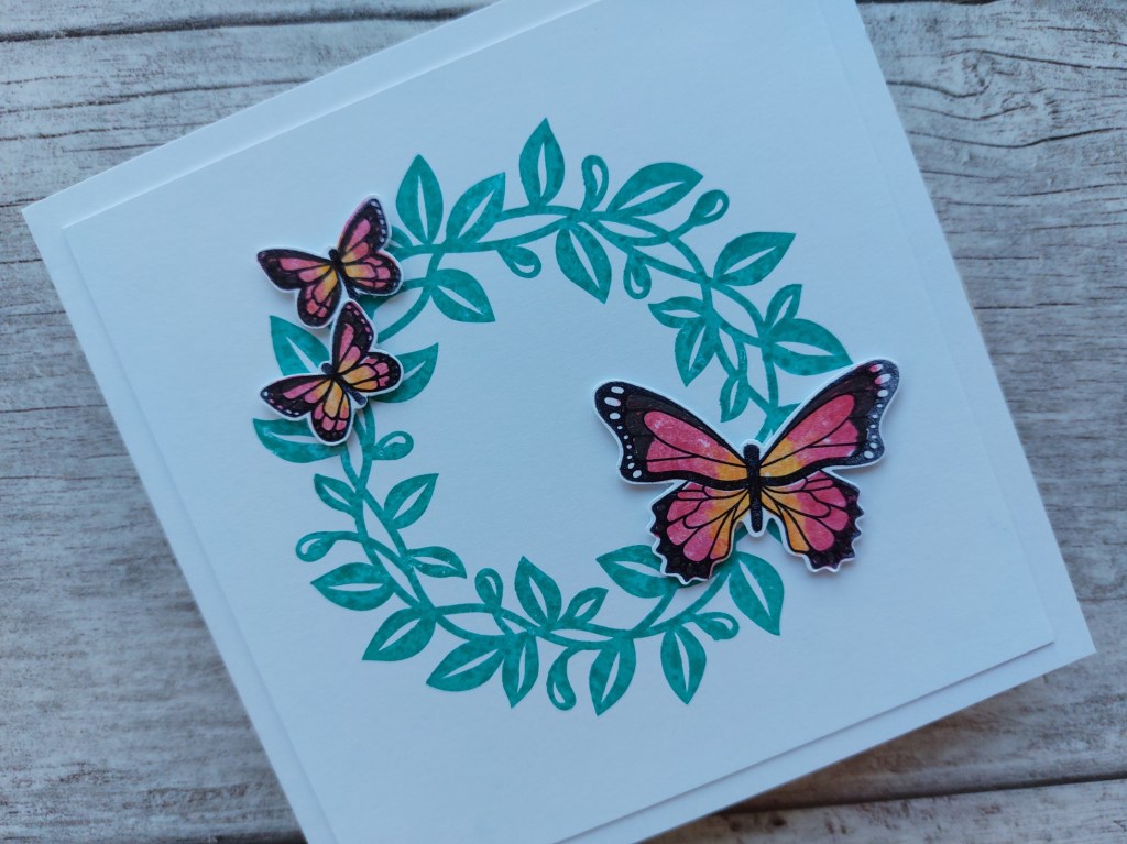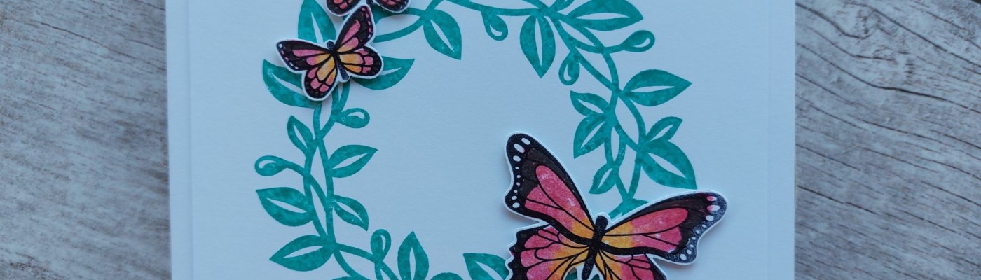 Now this little blog can be a bit educational at times, and I wanted to explain how I chose to colour the butterflies (was I overthinking it…?!) I only know about a few British butterflies, but that wouldn’t fit Addicted to CAS’ ‘tropical theme’, so I had a quick Google and discovered the red lacewing, which lives in the sub-tropical forests of Asia. Bingo – TGIF’s colours worked perfectly! Here’s a link with a bit more info from the Cambridge Butterfly Conservatory: cambridge butterfly.com/cethosia-biblis/