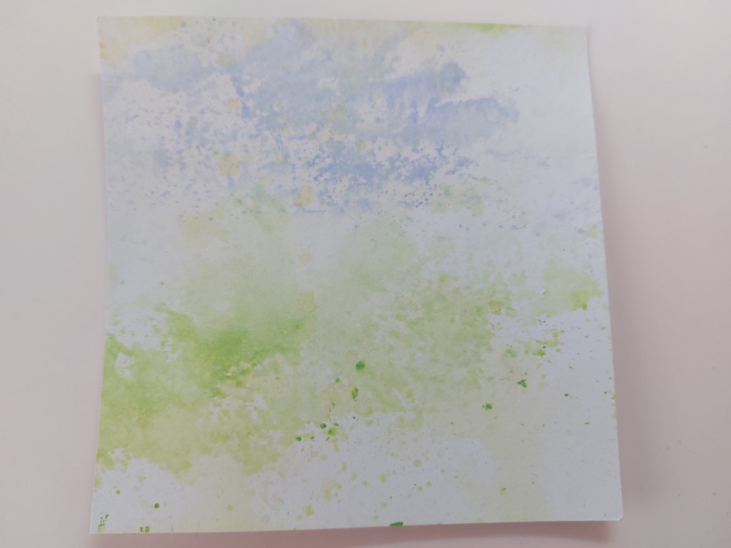 Obviously, I started with the background for this one. I scribbled SU Write markers in the challenge colours onto my crafting mat, spritzed them with water and then mopped up on a piece of stencil card. The only downside to this technique for backgrounds is that you have to wait for them to dry!