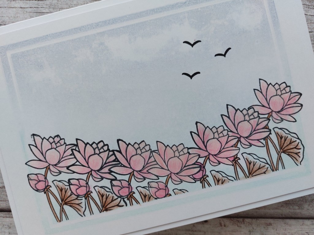 Welcome to my crafty blog. I’m trying to get back into my routine after all my trips away over the last month, so have resumed my Sunday sojourns back through Claritystamp’s Craft Club. Today it’s the turn of the lotus flower stamp from June 2021.