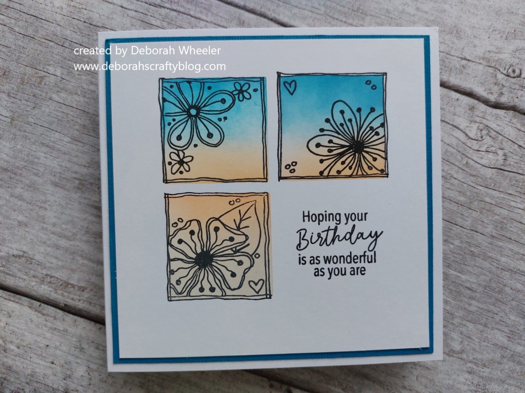 What a stroke of luck Deborah – those doodled floral squares are the perfect fit and so pretty too. Thanks for playing with us over at CAS Colours & Sketches this week!