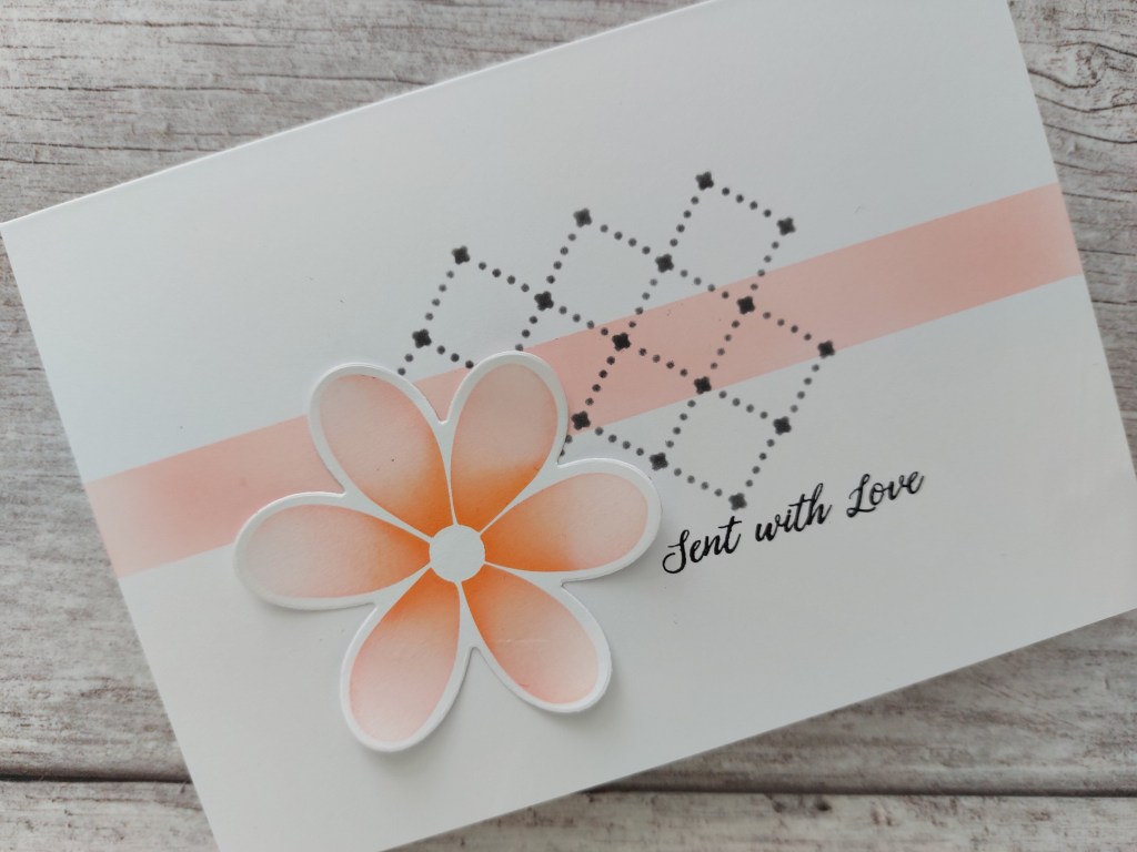 I blended more of the ‘tattered rose’ through one of the flowers on the new ‘beautiful blooms’ stencil, adding a little ‘ripe persimmon’ to the centre. I cut it out with the matching ‘beautiful blooms’ dies and glued it to the card front.