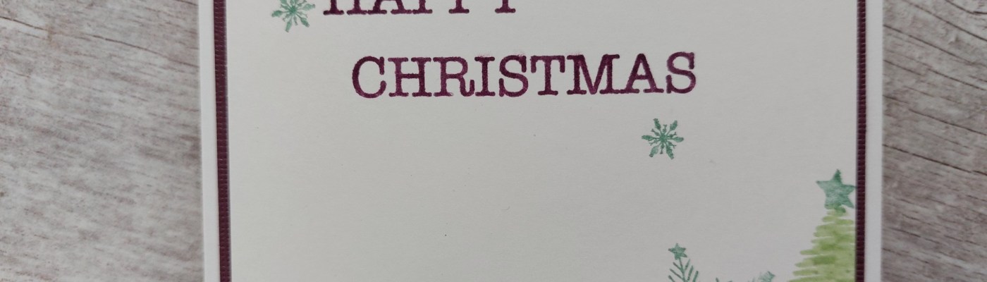 I mounted it on a layer of matching dark purple card and then onot a 5×5 card blank. I also retouched one of the stars on the trees with the mint pen, as it had got overstamped with the ‘dry weed’.