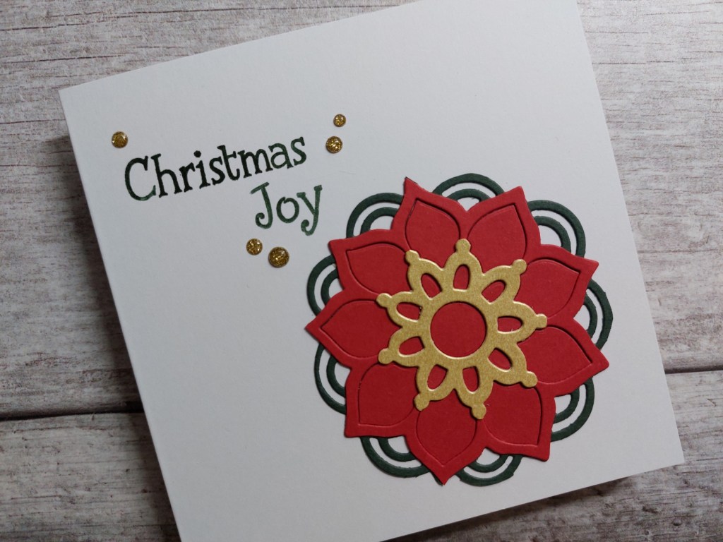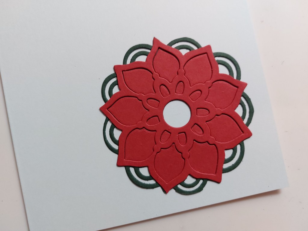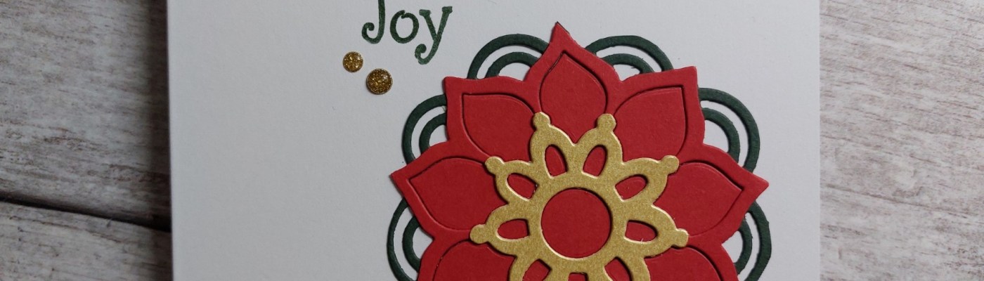 Hello crafty friends. Well, I’m continuing the poinsettia theme today, but without using a poinsettia stamp or die on this card! My Sunday dip back into Clarity’s craft club reached May 2020, which was a mandala die.