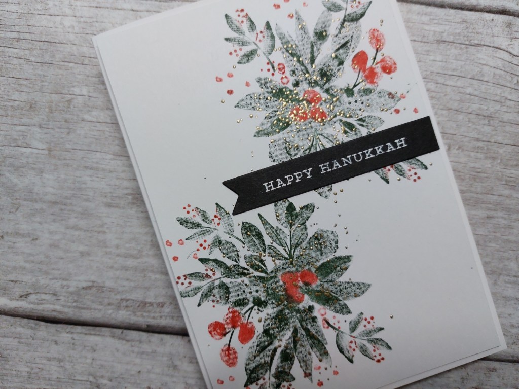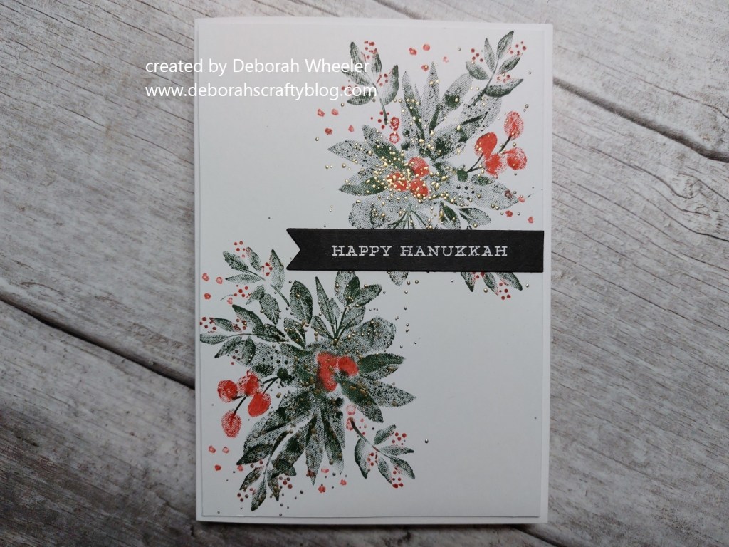 Hello crafty friends. Bit of a change of theme on today’s card – I’ve got a few Jewish friends so needed some Hannukah cards to send them, as it begins on 18th December. I’ve used Stampin’ Up!’s ‘Eden’s Garden’ stamps, taking the colours from Color Throwdown and inspiration from the designer’s card at Global Design Project