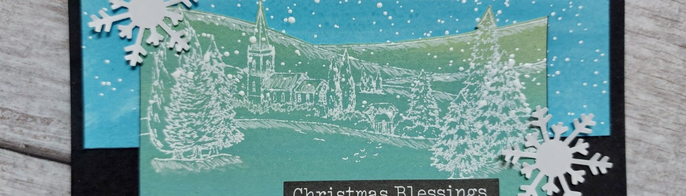 Welcome to my crafty blog and a card that I’m still in two minds about! I decided to use Clarity’s ‘Jayne’s winter scene – church’ for this card based on the sketch from TGIF challenges (which I rotated), picking up the top row from TicTacToe‘s grid.