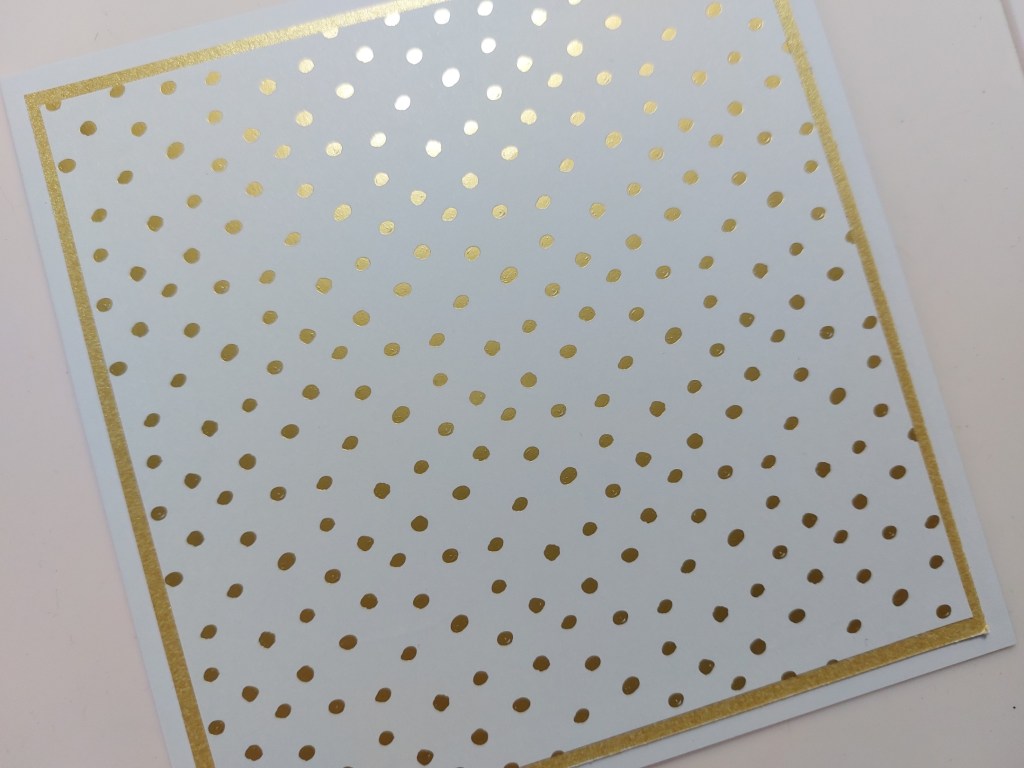 I mounted a square of the retired SU ‘gold and silver’ DSP onto a layer of gold card and attached them to a 6×6 card blank.