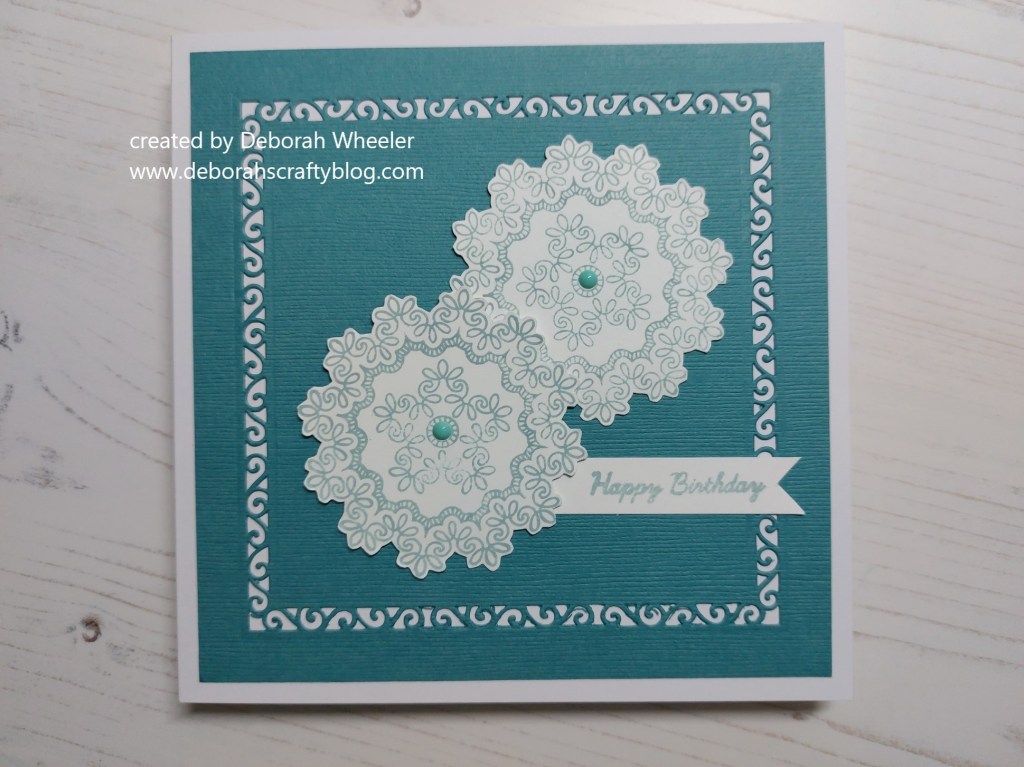 Hello crafty friends. Welcome to day 4 of my 12 Days of Clarity and today it’s the ‘lace round’ stamp from April’s Craft Club.