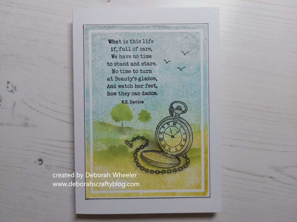 Well here we are on day 9 of my 12 Days of Clarity, so today it’s the turn of the pocket watch stamp from September’s Craft Club to take centre stage.