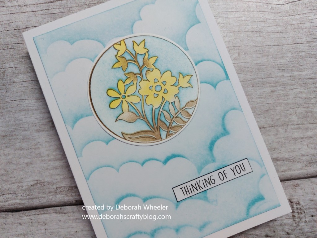 I really like your take on the sketch, Deborah. The clouds are lovely as a background for your floral spotlight. Thank you for crafting along with us at Atlantic Hearts Sketch Challenge.