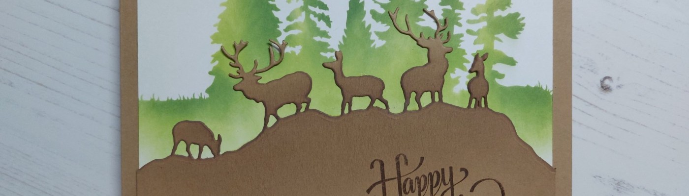 Fab masculine card, the stencilled trees are the perfect backdrop for the die cut deer. Thanks for joining us at HLS Birthday. 🙂