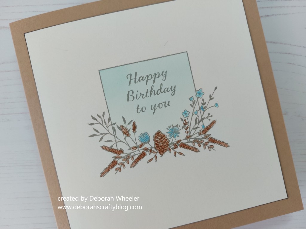 The final step was to stamp the sentiment from the ‘floral delights – happy birthday’ set inside the square using the ‘pebble shore’ Archival ink.
