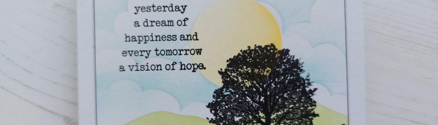 Hello again and welcome to my crafty blog. Today’s card uses one of my favourite techniques – masking & blending inks, together with ClarityCrafts’ ‘trees and their mantles’ stamps. I picked up the colours from Just Add Ink and the ‘silhouette’ theme from Just Us Girls