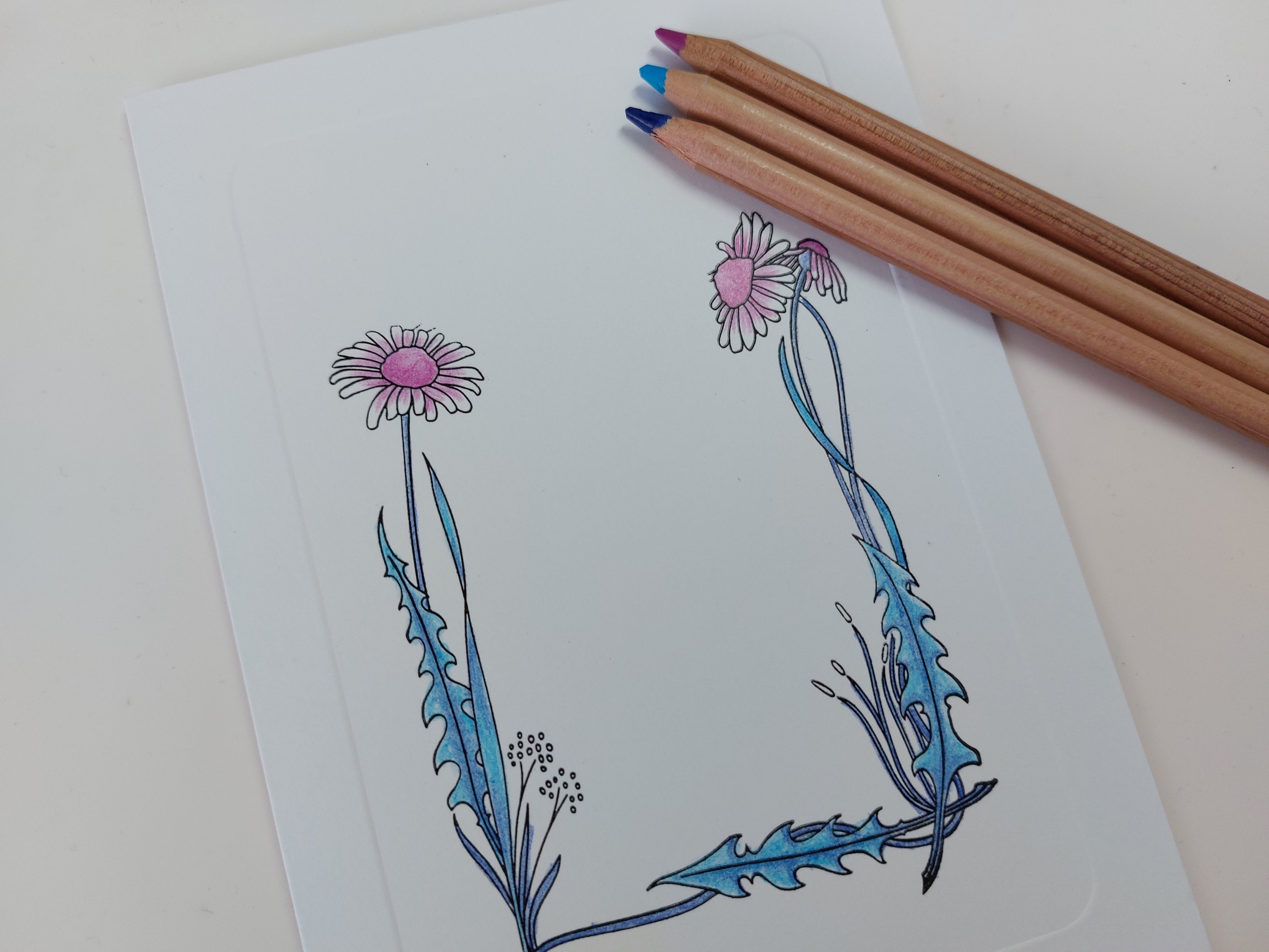 I gave the ink a couple of minutes to dry and then coloured the image using Pergaliner pencils in GDP’s colours.