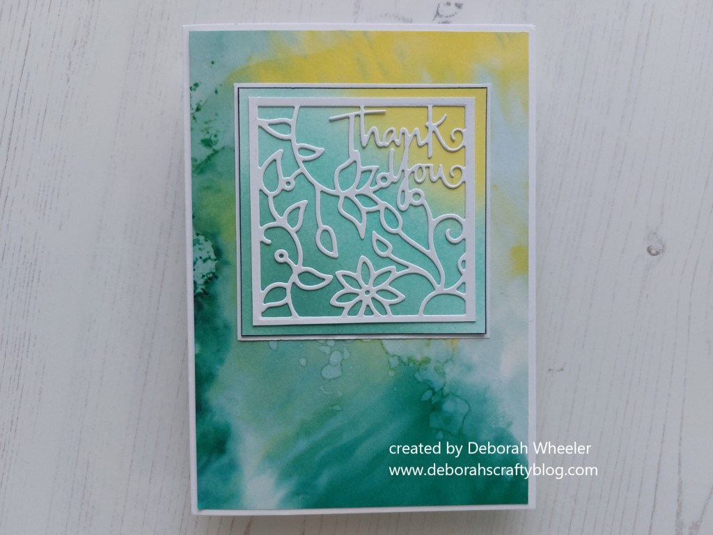 I’d blended the ink onto the square on the diagonal, so that the yellow sat behind the ‘thank you’ when I glued them together.