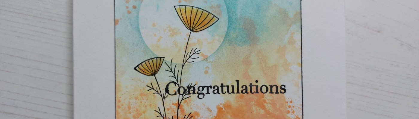 I’m delighted to have been invited along as guest designer for the new shades of teal and orange at Color Hues! For once, this card came together quite easily – definitely helped by the fact that I had a mop-up piece of card in my stash in exactly the colours I needed and that ClarityCrafts‘ ‘meadow grasses’ stamps were already out on my desk! For good measure, I’ve also picked up flowers and splatters from Just Add Ink.