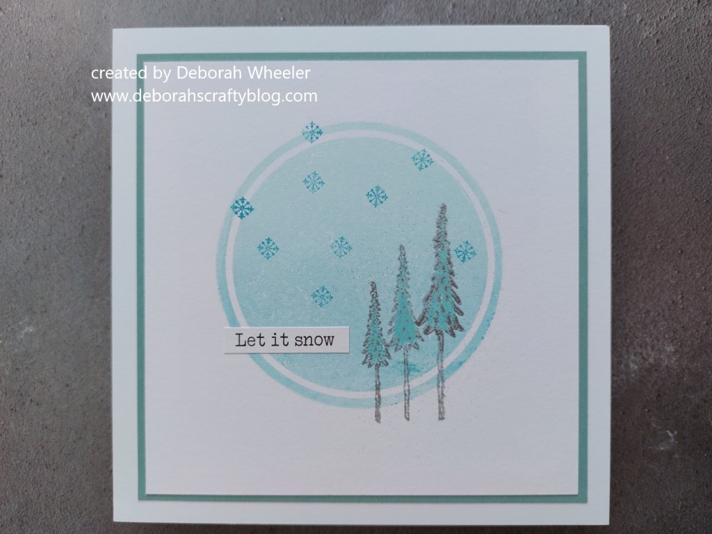A great card Deborah. I love that Circle Backdrop stamp – such a wonderful effect!! You’ve used it perfectly to showcase your little snowy scne. A winner in my book! 🙂