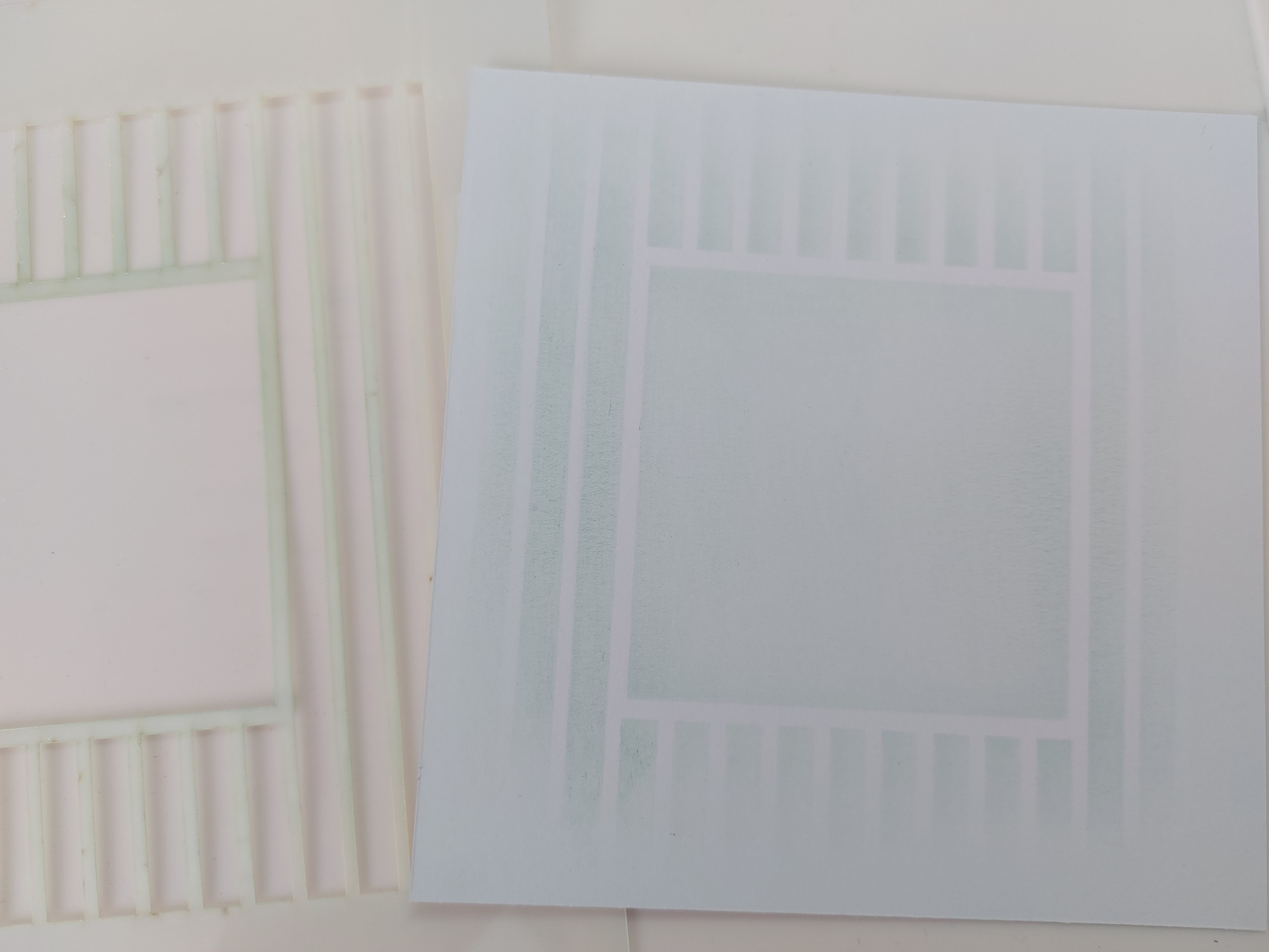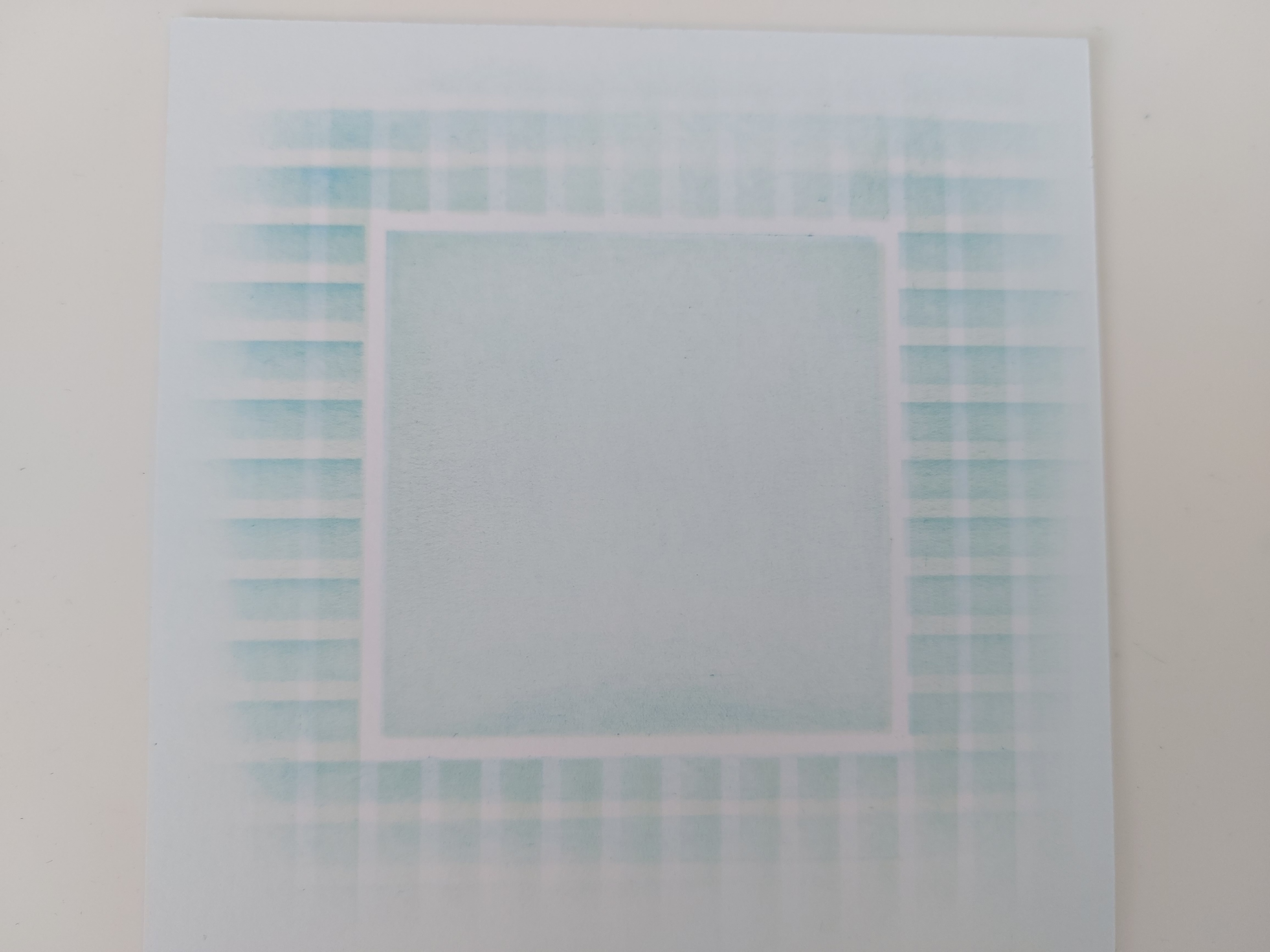 I started by creating the background with Clarity’s ‘strip box’ stencil, first brushing ‘everygreen bough’ Distress Oxide through it without going risght to the edge of the card. I then turned it through 90 degrees and brushed ‘mermaid lagoon’, which gave me a lovely checked pattern.
