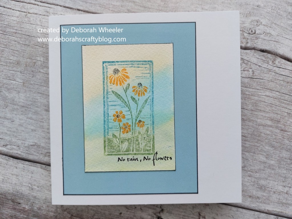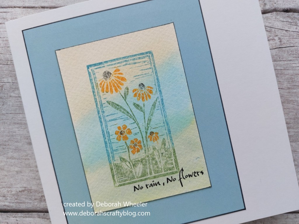 What a lovely summer card, Deborah! I like the soft wash of color behind the flowers. Our temps are shooting back up this week too. I’ll take that over snow! Thanks for joining us at Just Us Girls!