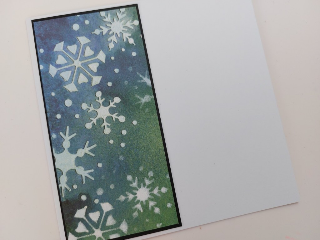 trimmed card down, mounted on piece of Great Lakes using reverse side, then black card & attached to card front.