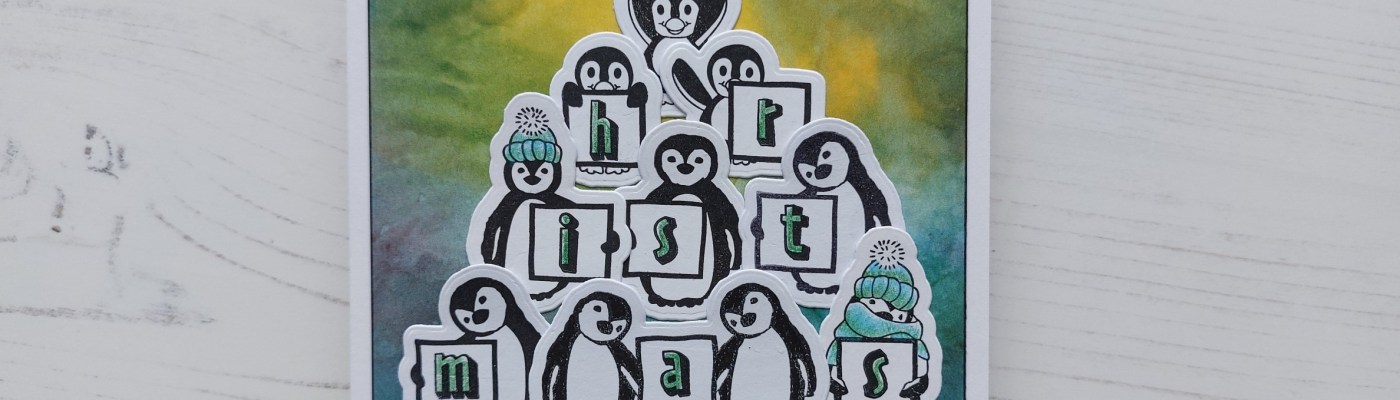 Hello there. Well, on the hottest UK day of the year so far I thought we could all do with some cool vibes from my last DT card featuring the ClarityCrafts Letterbox Penguins that were launched last weekend. After the complete minimalism of yesterday’s card, I think I may have slightly overdone it on this one!! I’ll be sharing it with Festive Friday (although it’s not a card of thanks, it does pick up teal, yellow and die cuts from their inspo list) and with Happy Little Stampers dies challenge.