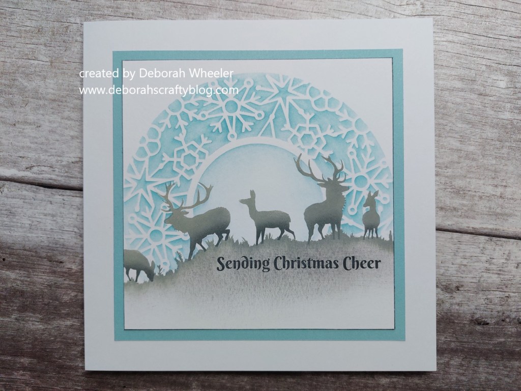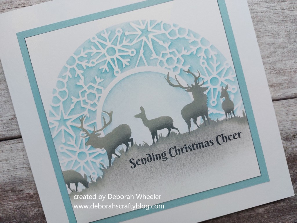 Wow, this is a gorgeous take on the sketch, Deborah! Not sure whether I love the round snowflake stencil or the line of deers more but I do know they work beautifully together. Thanks for playing along with us at FMS this week.